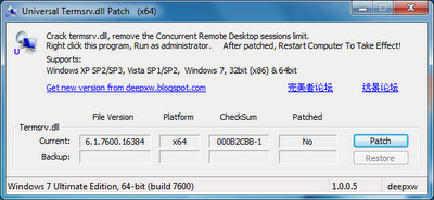 1. Download the Universal Termsrv.dll Patch by DeepXW and unzip it.